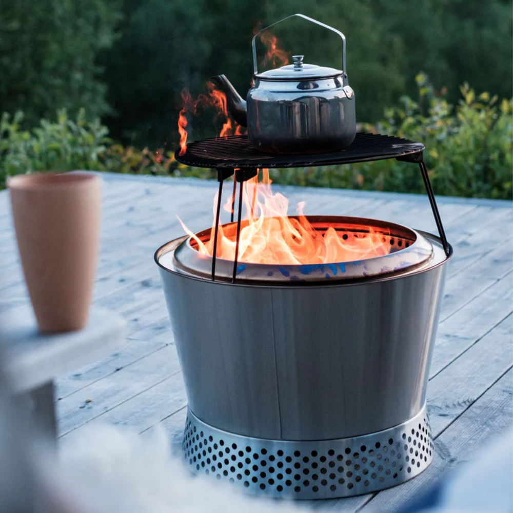 En eldstad för utomhusbruk med en vacker och distinkt design, utvecklad för att ge bästa och renaste möjliga förbränning. Den ger en extra varm eld, där rök är praktiskt taget frånvarande.