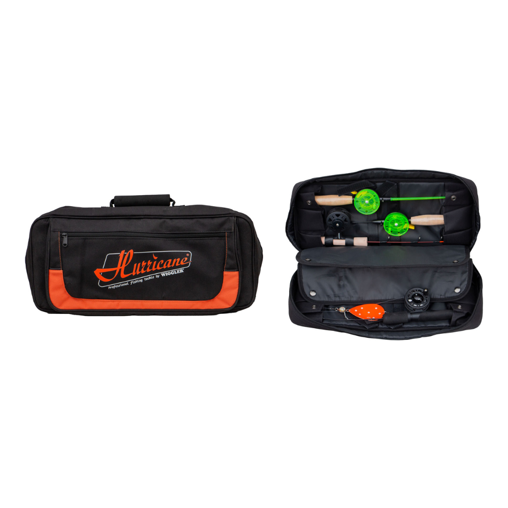 En pimpelspöväska för de lite längre pimpelspöna. Avgränsare i mitten på väskan så man kan förvara spön på båda sidor av väskan. Extra förvaringsfack på utsidan.