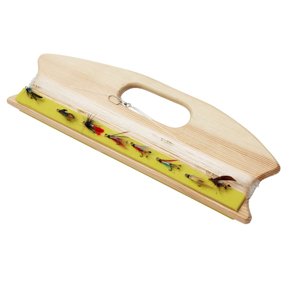 En klassiskt utterlina med trähandtag. På linan sitter 8 högkvalitativa dubbelkrokade flugor, utvalda för att locka öring, röding och harr. Om en fluga skulle tappas kan du enkelt byta ut den.