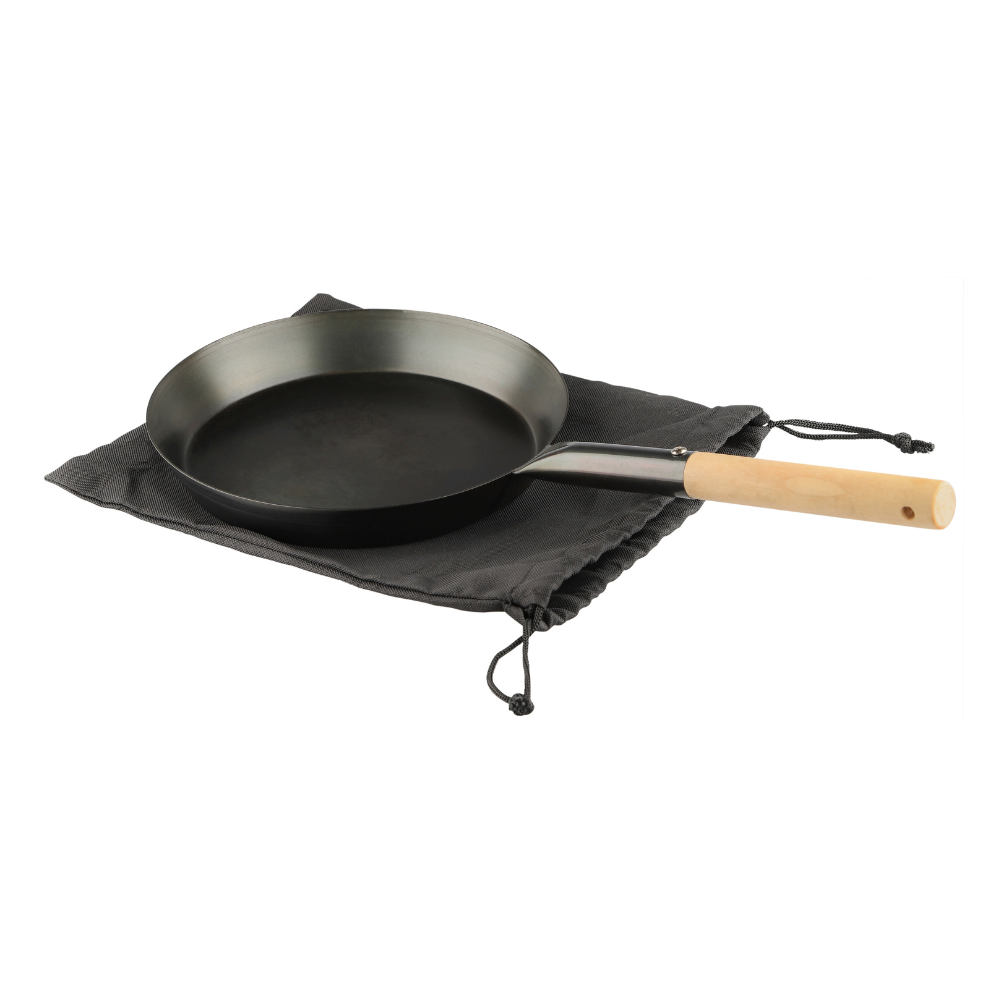 Tillverkad i slitstarkt kolstål, vilket ger optimal värmefördelning och lång livslängd. Den 24 cm stora stekytan rymmer gott om mat för 2–4 personer, och den något högre kanten håller innehållet på plats även när du rör om eller steker vid elden.